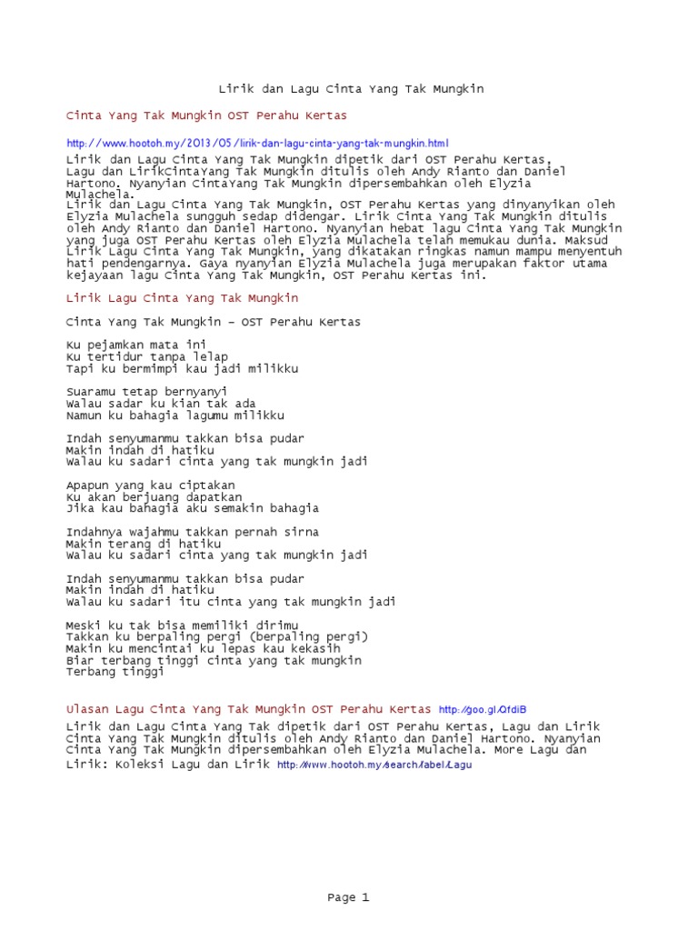 Lirik Dan Lagu Cinta Yang Tak Mungkin Pdf
